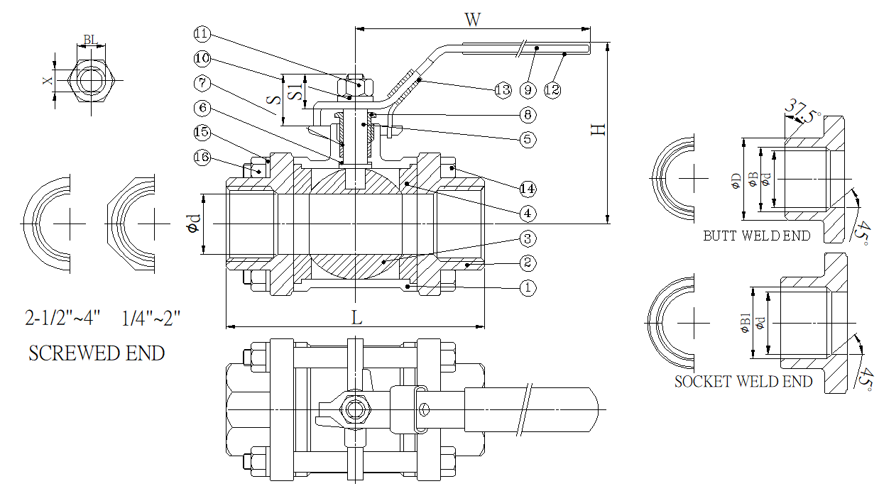 Valve end = Butt weld end / Socket weld end